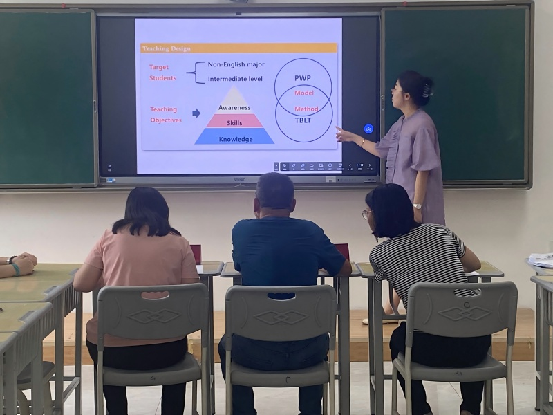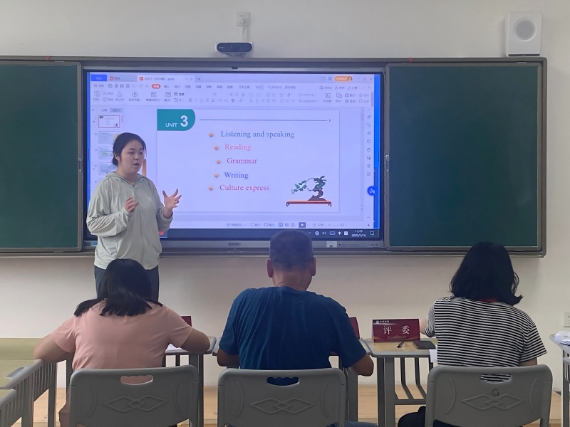 比赛坚持“公平、公正、公开”原则,由两位教研室主任共同牵头,特别邀请具有丰富教学与评审经验的资深教师及银龄教授组成评委组,从教学设计、课堂呈现到教学反思进行专业点评。参赛教师以1学时内容为主线,从学情分析、目标设定到方法创新逐一呈现,既展示扎实的语言功底,又体现灵动的课堂设计。阅读思辨环节层层递进,视听说任务真实有趣,综合语言运用贴近学生需求。展示结束后,选手们在30分钟内现场完成500字教学反思,围绕理念更新、方法优化与课堂实效坦诚剖析,气氛真诚而热烈。