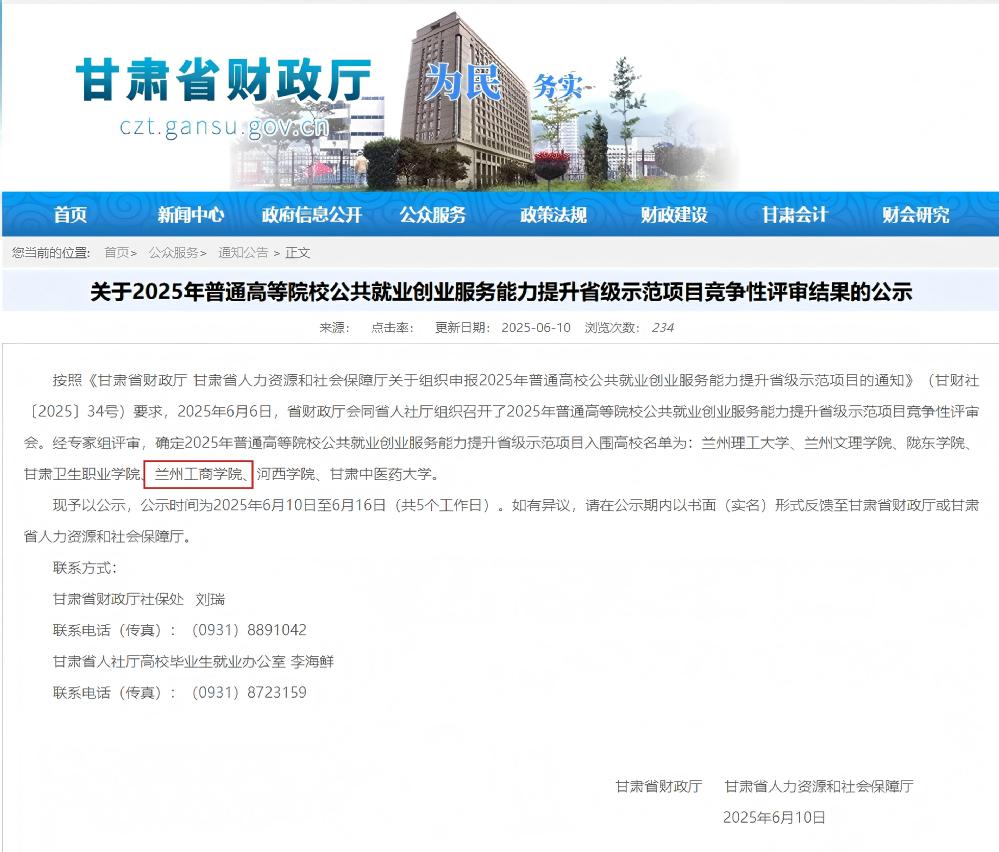 近日,我校就业创业工作迎来重大突破!根据《甘肃省财政厅甘肃省人力资源和社会保障厅关于组织申报2025年普通高校公共就业创业服务能力提升省级示范项目的通知》要求,学校就业指导中心积极申报,经过全省共17所高校参加的第二轮竞争性评审答辩,最终我校成功入围2025年甘肃省普通高等院校公共就业创业服务能力提升省级示范项目,成为此次全省七个中标单位中唯一一所民办本科高校,获得省财政厅一次性50万元专项资金,这是我校建校以来所获的最高专项资金支持。