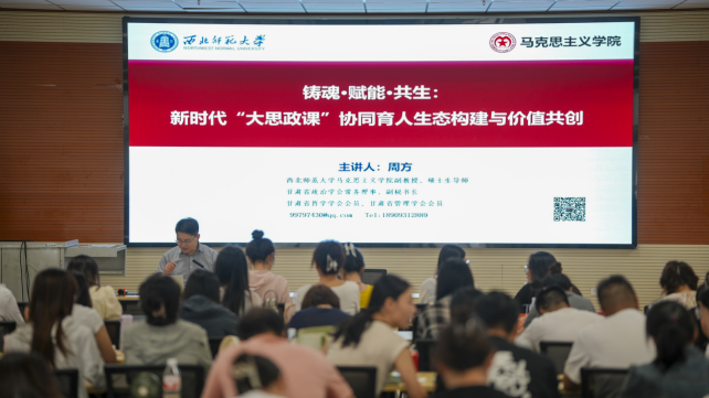 在思想引领与教学能力提升环节,教育部高校思想政治工作队伍培训研修中心(西北师范大学)常务副主任孙健教授系统阐释了习近平总书记关于教育重要论述的时代背景与核心要义;西北师范大学马克思主义学院副院长、副教授周方深入剖析了课程思政与思政课程融合发展的实践路径;教育部国培专家王孝军教授结合师德培育新要求进行了专题讲授;全国优秀教师宁贵霞教授分享了人工智能赋能教育教学的前沿应用;西北民族大学贺媛副教授通过课程设计工作坊,带领新教师沉浸式演练教学技巧;兰州大学张加驰教授以自身成长为例,生动诠释了教师专业发展的进阶之道。