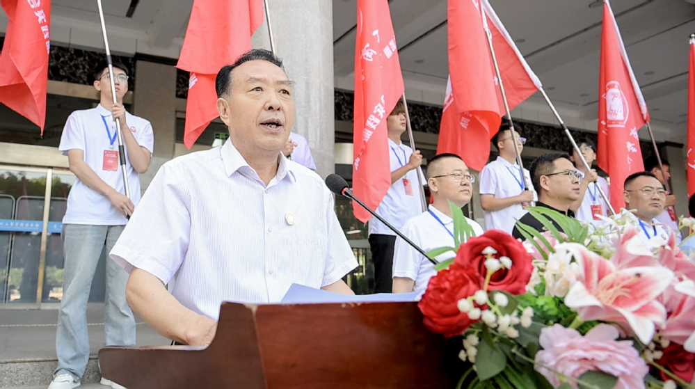 7月14日上午,学校在图书馆前举行2025年大学生暑期“三下乡”社会实践活动出征仪式。学校党委书记雒建子、校长王华栋、行政常务副校长马义哈、教学常务副校长宿光平、副校长康昱明,各二级学院党组织负责人及参加本次“三下乡”社会实践活动的500余名师生参加出征仪式。仪式由党委副书记郇东主持。
