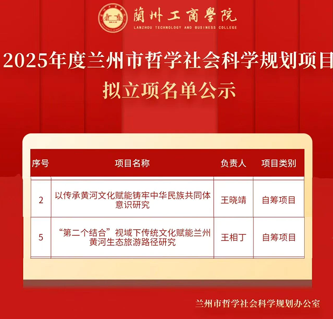 近日,2025年度兰州市哲学社会科学规划项目立项名单揭晓,马克思主义学院王晓靖老师、王相丁老师主持的课题凭借扎实的前期研究基础、鲜明的地域特色与突出的现实价值成功获批,为学院科研工作再添亮眼成果。