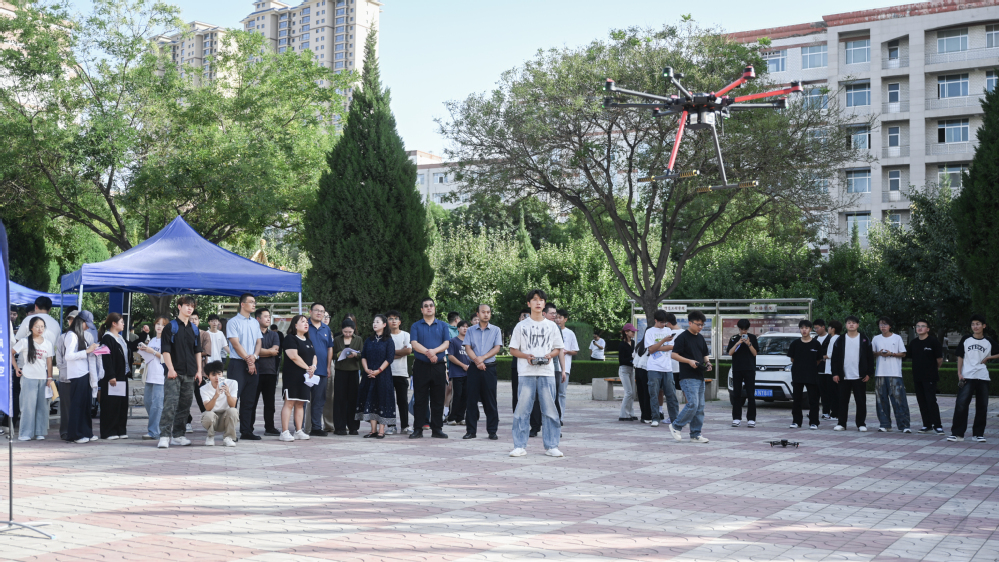 随着地爆球装置的启动,体验活动在欢快的氛围中正式启动。新生们穿梭于各个区域,踊跃参与丰富多样的活动。尤其是在新职业体验区,甘肃翔悦智能科技有限公司的静态展示和穿越机飞行体验引起同学们广泛关注,专业飞手耐心讲解甘肃省现有最大的重载无人机KF-150操作规则,指导现场同学试飞,引来阵阵惊叹与掌声。