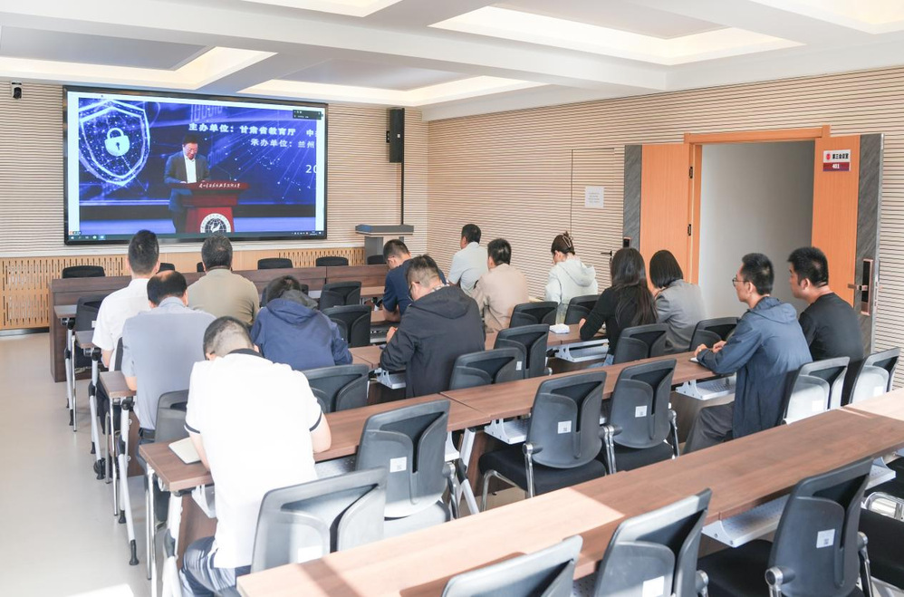 9月16日上午,由省委教育工委、省委网信办举办的2025年甘肃省网络安全宣传周校园日启动仪式在兰州资源环境职业技术大学举行。学校在第三会议室设立分会场,党政办公室、学生处、创新创业学院、网络安全与信息化建设办公室部门负责同志及各二级学院党委书记通过视频会议形式参加活动。
