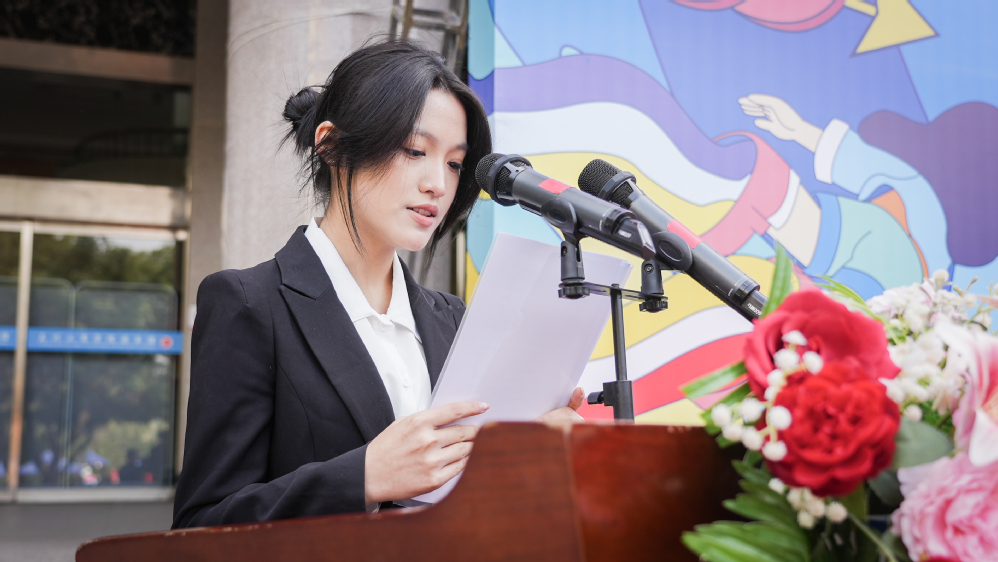 学生代表文法学院罗语彤同学在发言中提出倡议,呼吁同学们像关注身体健康一样关注自身心理状态,把温暖传给身边的同学,积极参与学校组织的心理健康活动,以健康的心灵为帆,在青春的海洋里稳稳航行。