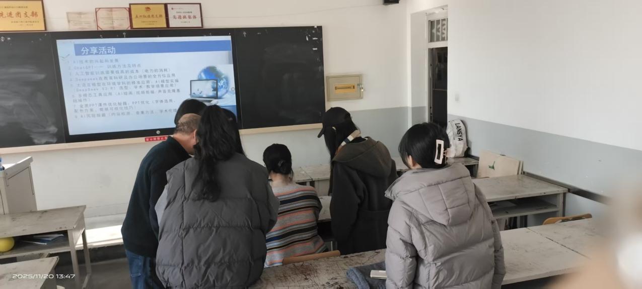 会上,闫瑶瑶老师分享了去杭州学习所得,重点在多模态工具应用板块,讲解了AI绘画、视频剪辑、声音克隆等工具的基础操作技巧。这些工具可广泛应用于课件制作及虚拟实验演示等教学场景,如利用 AI 生成环境设计效果图、制作课程讲解数字人视频等,能有效降低教学资源制作成本,提升内容呈现效果。