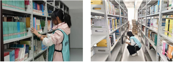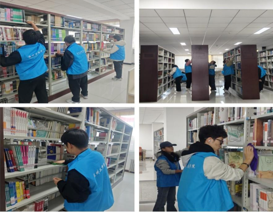 实践现场,同学们身着志愿马甲迅速分组投入工作。大家分工协作,有的对照编码将零散图书逐一归位,有的用抹布细致擦拭书架层板与框架,有的整理书架间距、对齐书脊,现场秩序井然。面对数量较多的图书和不易清洁的角落,同学们耐心细致、相互配合,不放过任何细节。经过近1小时的忙碌,原本部分杂乱的书架变得整齐有序,层板与书脊一尘不染,图书馆阅读环境得到显著改善,充分展现了经济学院学子的责任担当与务实作风。