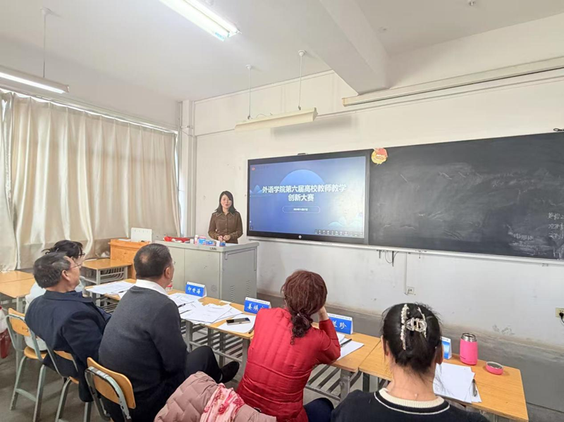 为持续推动教学创新,打造一流课程,并选拔优秀团队参加校级竞赛,11月27日下午,外语学院第六届高校教师教学创新大赛院级选拔赛在明辨楼409教室成功举办。本次大赛由教学院长助理袁枫茸老师主持,大赛旨在“以赛促教、以赛促改”,激发教师教学热情,交流创新教学方法。比赛特邀我院银铃教师姜焕文教授、蔡兰珍教授、印世海教授及专任教师任贝贝老师、王莉老师共同担任评委。