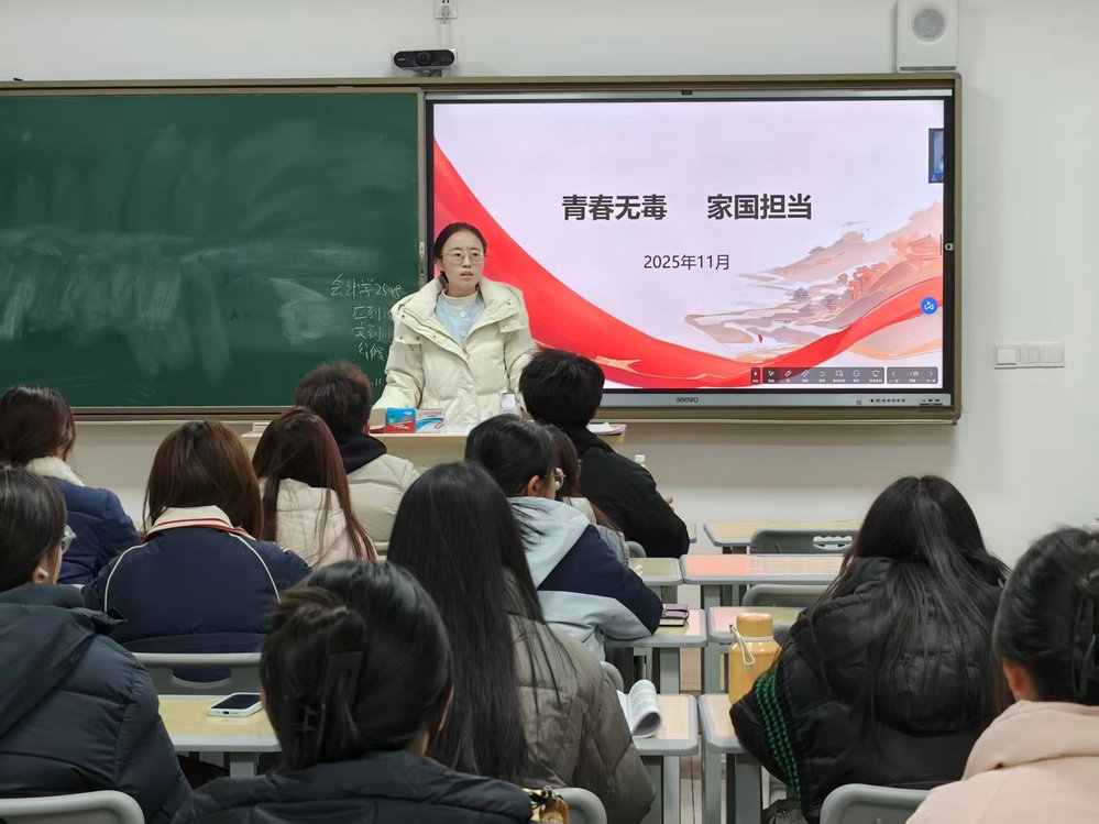 “青春无毒·研学筑防”主题活动同步落地见效,自11月18日起,各学院以“青春无毒·班级同行”为主题开展禁毒主题班会,传授禁毒知识,宣传毒品危害,加强防范意识,夯实教育渗透成效;11月28日下午,全校各学院学生代表齐聚学术报告厅观看禁毒题材影片《湄公河行动》。影片中缉毒民警的英勇无畏与毒品带来的深重灾难形成强烈对比,震撼情节引发师生情感共鸣,构建起“理论认知+情感体验+实践承诺”的禁毒教育闭环。