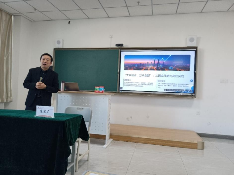 兰州交通大学教授、博士,甘肃省人社厅创业老师陈宗广为我院教师带来了《创新创业课程计划》《初识创新与创业》专题授课。陈教授围绕创新创业教育的总体框架、课程体系建设、教学理念更新等内容进行了深入讲解,为教师开展专业化“双创”教学提供了理论基础和课程设计路径。
