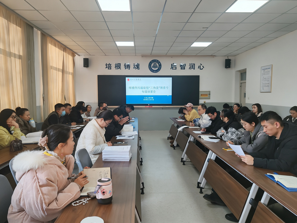 会上,李剑带领全体教职工重温了《新时代高校教师职业行为十项准则》,传达学习了学校关于师德师风建设的最新工作要求,并结合教育系统师德师风先进典型案例与反面警示案例,深入解读师德师风建设的核心要义与实践要求,引导全体教职工自觉遵守师德底线、涵养高尚品质。会议指出,师德师风是立教之本、兴教之源,“三热爱”教育是培育时代新人的重要举措。全体教职工要提高政治站位,主动担当作为,以过硬的师德素养、扎实的育人行动,为培养德智体美劳全面发展的高素质专业人才保驾护航。会议明确了下一阶段学院师德师风建设及“三热爱”教育重点任务:一要常态化开展师德师风学习教育,通过专题讲座、座谈交流、主题研讨等形式,筑牢教职工思想根基;二要健全师德师风考核评价机制,将师德表现与职称评聘、评优评先等挂钩,强化正向引导与反向约束;三要丰富“三热爱”教育载体,结合专业特点,开展“企业高工进校园”宣讲、专业技能竞赛、校园文化活动等,推动“三热爱”教育入脑入心。