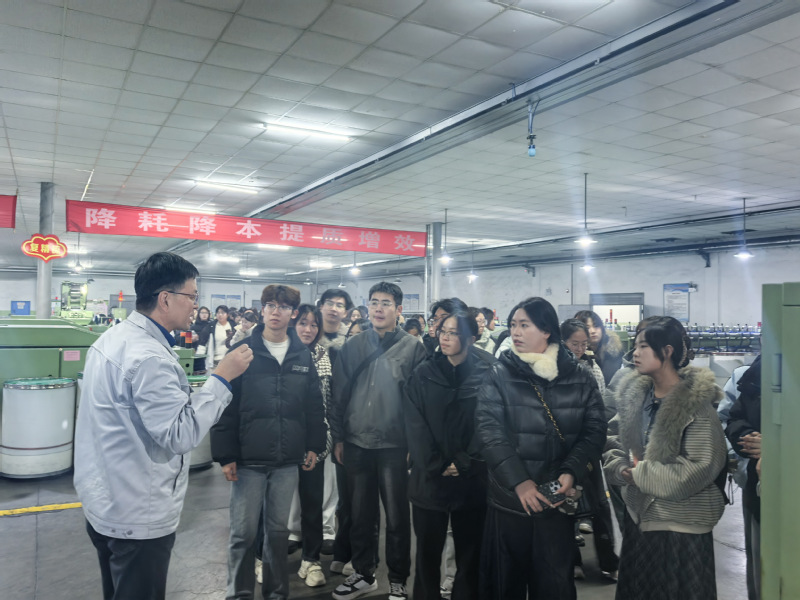 兰州三毛实业有限公司副总兼财务总监李建真、财务部部长董小霞及公司相关人员热情接待了会计学院师生。李总首先详细介绍了公司的发展历程和市场定位,通过看企业的宣传片让学生们更好地理解公司的发展与运营模式。接着,师生们在李总和董部长等人的陪同下,按工艺路线参观了生产现场,从原料库开始,现场参观了毛条高温染色、复精梳、纺纱、织布、染整五大生产流程。在原料车间,学生们观察了原材料毛条的挑选和储存;在每个生产车间,李总、董部长和随行的工作人员都给同学们耐心讲解了生产工序流程,展示了纺织工艺,让同学们对纺织生产行业有了直观的认知。