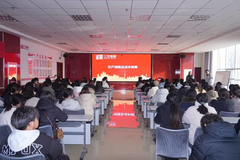 参观结束后,在办公楼一楼会议室财务部董小霞部长向同学们系统介绍了成本核算方法、流程以及应用,生动阐释了成本核算与控制在企业的价值与意义,通过对毛条、纺纱、织布、染整等工序的深入分析,学生们对纺织品的成本构成有了清晰的认识。