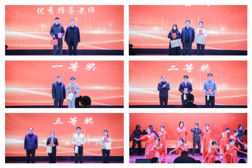 比赛中场设置的红色知识互动环节,通过学习通平台开展抗战历史问答,同学们踊跃参与、积极作答,在趣味互动中加深了对红色历史的认知,进一步凝聚了爱国情怀。大学生艺术团带来的思政舞台剧《薪火映山河》,以灵动舞姿致敬峥嵘岁月,为大赛增添了别样风采。