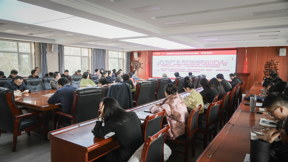 为深入学习贯彻党的二十届四中全会精神,切实把思想和行动统一到党中央决策部署上来,12月18日,学校党委书记雒建子为机关党总支讲授专题党课,机关全体党员参加学习,党课由机关党总支书记马玉洁主持。