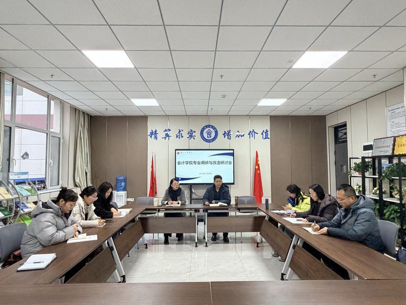 为深入对接行业发展前沿,系统推进专业改造与人才培养创新,会计学院于2025年12月29日在综合教学楼A108组织召开了专业调研与改造专题研讨会。会议由会计学院教学院长李菊香教授主持,王学龙院长、各教研室主任及相关教学管理人员参加会议。