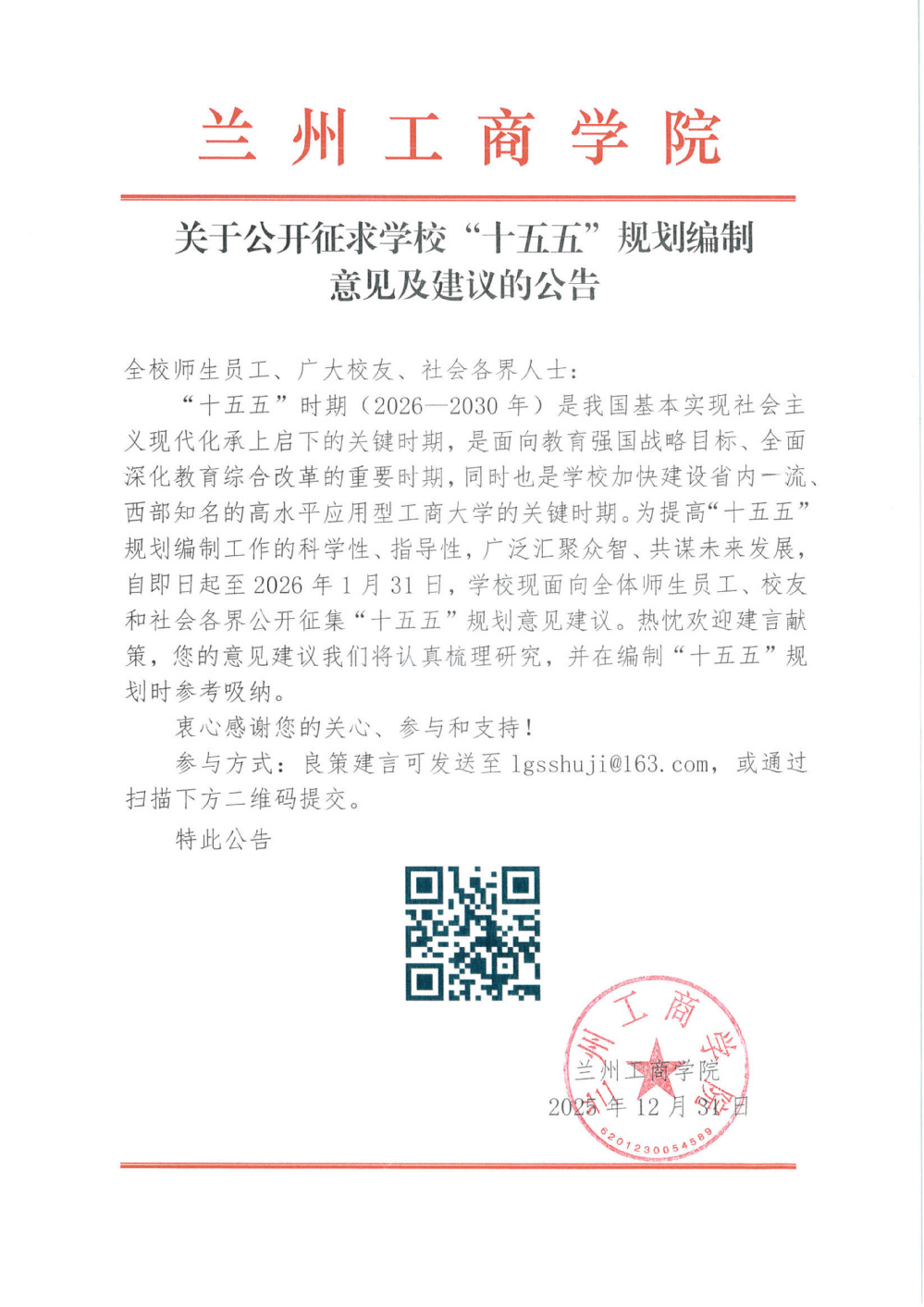 关于公开征求学校“十五五”规划编制意见及建议的公告