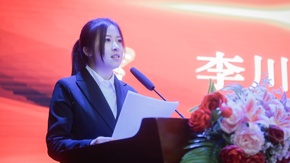 国家奖学金获得者、管理学院人力资源管理专业2201班李川茵同学作为获奖学生代表发言。在发言中,她分享了自己在学业提升、科研探索和社会实践等方面取得的进步,表达了对学校培养和教师关怀的感激之情,并倡议全体同学以奋斗精神书写青春华章,以实际行动实现人生理想。