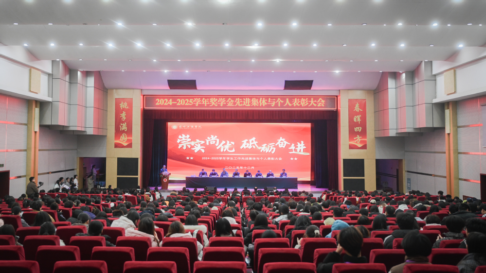 12月29日下午,学校2024—2025学年“崇实尚优砥砺奋进”学生工作先进集体与个人表彰大会在学术报告厅隆重举行。党委书记雒建子、校长王华栋、行政常务副校长马义哈、教学常务副校长宿光平、党委副书记郇东、副校长王治和、董事会督导委员会张春庆、王渊涛等校领导出席大会。相关职能部门负责人,各二级学院党委书记、行政院长,全体辅导员老师,以及各学院学生代表、全体获奖个人及获奖集体代表共计800余人参加。大会由副校长康昱明同志主持。