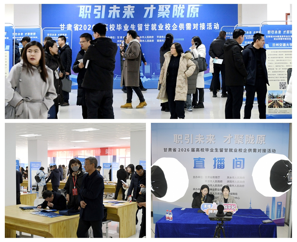 为推动人才供给与产业需求高效匹配,引导高校毕业生深入基层、扎根陇原,1月8日,由甘肃省教育厅牵头,联合天水、庆阳、平凉、陇南、定西五市共同主办的“职引未来·才聚陇原”2026届高校毕业生就业校企供需对接活动在甘肃林业职业技术大学举行。