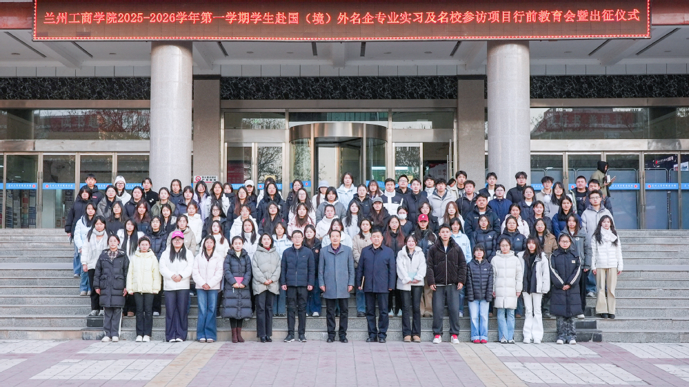 2026年1月9日下午,兰州工商学院2025-2026学年第一学期学生赴国(境)外名企实习及名校参访行前教育会暨启动仪式在综合楼C501举行。校长王华栋,教学常务副校长宿光平,省教育厅督导专员、学校纪委书记、董事会督导委员会督导高仁杰出席活动,国际合作交流办公室全体成员及项目师生共90余人参加。