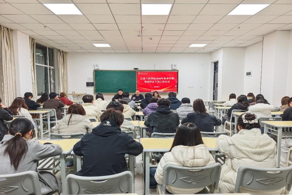 为进一步统一思想、明确方向,推动学院党务、团学工作高质量发展,信息工程学院于3月4日晚在综合教学楼A602室召开了2026年春季学期党团学生干部工作会议。学院团总支书记张睿、党政秘书杨阳以及党团学生干部参加会议。会议由学院党委副书记姜力玮主持。