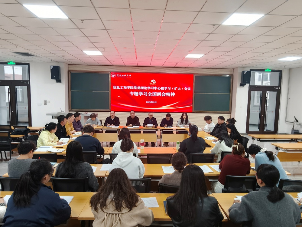 3月12日,信息工程学院召开党委理论学习中心组学习(扩大)会议专题学习全国两会精神,深入领会全国两会精神的核心要义和实践要求。学院全体教职工参加会议。