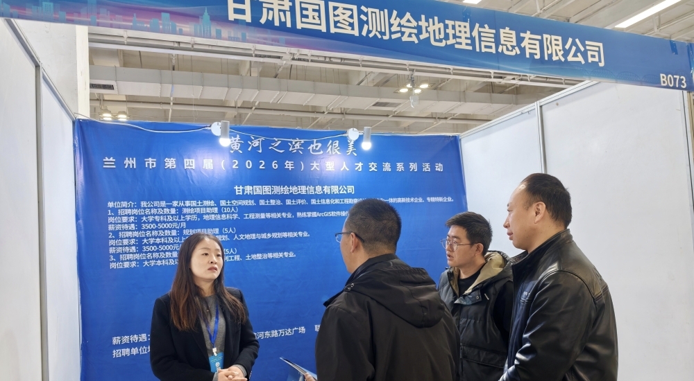 招聘会现场,三位老师与各参会企业负责人深入洽谈,详细了解企业岗位需求、薪酬待遇、人才培养及职业发展空间等信息,重点对接甘肃鑫源祥置业有限公司、甘肃能投控股有限公司、中国建筑第四工程局有限公司西北分公司、甘肃北斗天地测绘有限公司、甘肃过图地理信息测绘有限公司等多家优质企业。交流中,三位老师向招聘企业详细介绍了学院人才培养定位、实践教学特色及毕业生综合素养。充分展示学院人才培养优势与就业竞争力,并就深化校企合作、搭建人才供需对接平台、促进产教融合等方面达成初步共识。