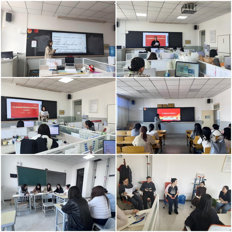 为深入贯彻落实新时代教育评价改革精神,全面加强教师职业道德与学术规范建设,切实筑牢师德师风建设底线,近日,兰州工商学院会计学院严格按照学校统一部署,组织全院教师开展《新时代高校教师职业行为十项准则》及师德违纪典型案例专题学习活动。学院以教职工大会集体学习为主要形式,辅以教研室交流研讨等途径,分层推进、全员覆盖,推动师德师风建设走深走实,引导全体教师以高尚师德涵养育人初心,以扎实学识践行育人使命。