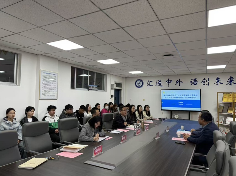 为全面总结实习工作成效,表彰先进典型,深化校地合作育人成果,4月15日,兰州工商学院外语学院隆重召开榆中县和平学区/兰州工商学院外语学院实习工作总结暨优秀实习生表彰仪式。榆中县和平学区校长魏兵、办公室主任周春涛应邀出席,外语学院领导班子及全体辅导员参加仪式,共同回顾实习历程,见证学子成长,凝聚育人合力。