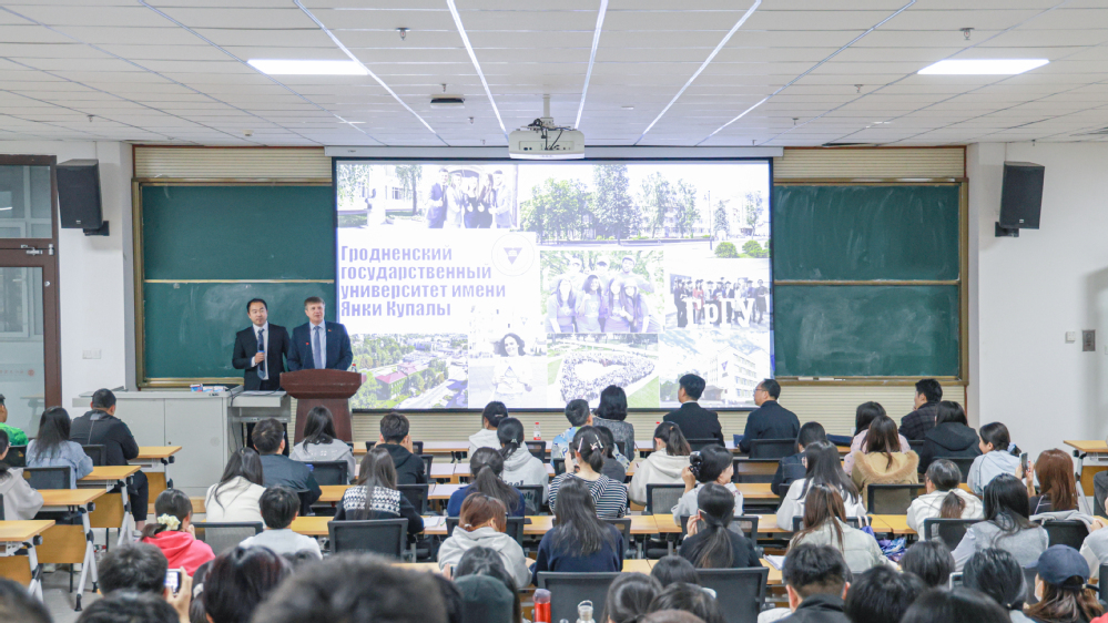 访问期间,学校举办了白俄罗斯格罗德诺扬卡·库帕拉国立大学留学项目专场宣讲会。帕夫洛夫担任主讲,面向学校有留学意向的学生,系统介绍了两校合作框架下的留学项目,详细解读了申请条件、专业设置、学费标准及相关支持政策,并就白俄罗斯的学习环境、生活成本及文化适应等话题进行说明,现场耐心解答了学生关心的问题。