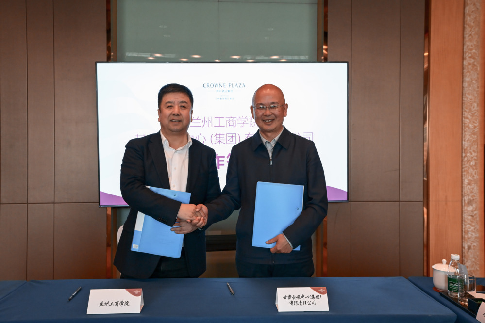 2026年4月16日,管理学院与甘肃会展中心(集团)有限责任公司校企合作签约仪式在兰州皇冠假日酒店举行。甘肃会展中心(集团)有限责任公司党委书记、董事长赵广欣,副总经理张国良,甘肃大剧院总经理等企业领导,管理学院院长把多勋、教学院长徐燕及教师代表参加仪式。