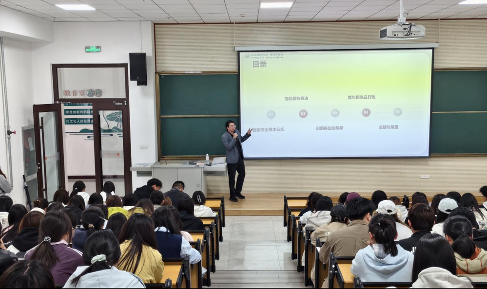 活动特邀学院实习基地共建单位——北京德恒(兰州)律师事务所于翔律师主讲。于翔律师从总体国家安全观切入,系统阐释了政治、军事、网络、生物等16个重点领域安全内涵,并结合高校真实案例,深入剖析境外势力借“学术合作”“高薪兼职”“网络渗透”等手段实施策反的风险路径,警示同学们严守科研数据与个人信息安全防线。