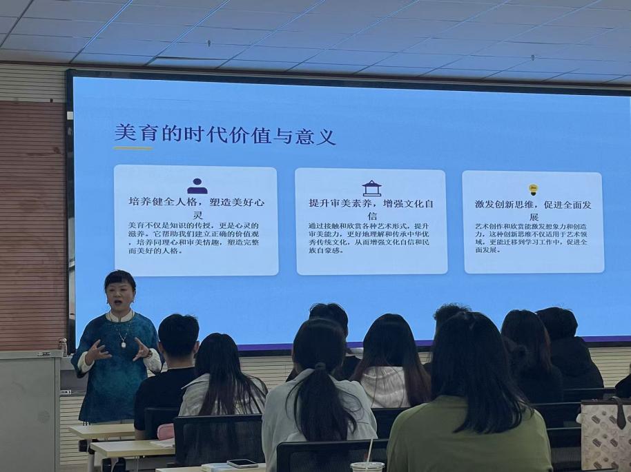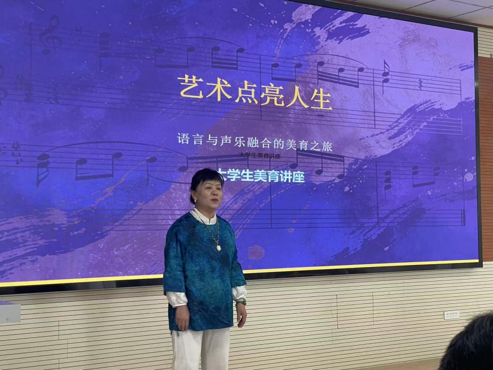 铃铛教授长期深耕声乐艺术与语言艺术融合教学领域,在艺术创作实践、美育普及推广等方面经验丰富、成果丰硕。讲座以“语言与声乐融合的美育之旅”为主线,立足新时代美育发展要求,系统阐释美育的时代内涵与现实价值,深刻剖析艺术在塑造健全人格、涵养美好心灵、厚植文化自信中的重要作用。她强调,美育重在以美润心、以美育人,不仅能够丰富知识视野,更能引导青年学生树立健康审美观念与正向价值追求。