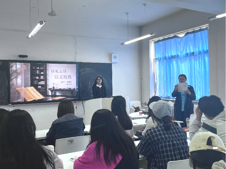 2026年4月23日下午,文法学院“学而”讲坛第八讲于实验楼305顺利开讲。本次讲座特邀兰州交通大学中华传统文化与礼仪研究中心主任陈鸿雁教授担任主讲人,面向文法学院全体教师、应用中文专业全体学生、法学专业部分学生,围绕“以礼立身,以文致远”主题展开分享,引领同学们感知礼仪文化的当代价值,践行“以礼润心,以礼润身,以思悟礼,以行致远”的成长准则。