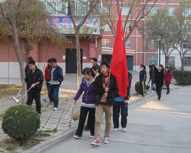 七十多名学生党员在学院党委工作部的组织下,从校门口开始,对校园马路边和绿化带里的垃圾进行了清扫。虽然天气寒冷,但是党员同学们依然干得热火朝天,他们的行动受到路过同学的一致赞誉。
