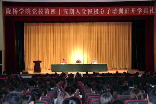 最后学院党委副书记、副院长李玉仓同志代表学院党委做了重要讲话。李书记在讲话中指出,学院党校在全国两会胜利闭幕,各族人民深入学习领会两会精神之际举行第四十五期入党积极分子培训班开学典礼,这对于深化全院党员干部的思想认识、增强党性修养有着重要的意义。李书记在讲话中对全体培训班学员提出了三点希望和要求:一是要加强理论学习,坚定理想信念;二是要明确入党目的,端正入党动机;三是要言行一致,努力实践。同时,李书记还指出,大学四年是人生最美好的时光,也是同学们树立正确的世界观、人生观和价值观的关键时期,全体学员要通过培训班的学习,养成良好的学习、生活习惯,努力成为思想上的先行者、学习上的佼佼者、工作中的开拓者、生活中的奉献者,以自己的不懈努力完成各项培训任务,取得优异的成绩,顺利结业,争取早日加入党组织,成为真正的中共党员。