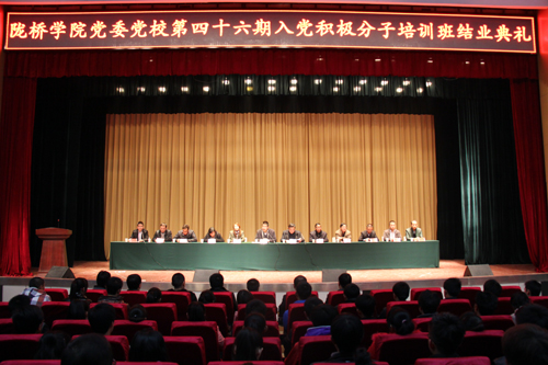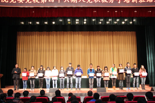最后,马义哈副书记代表学院党委做了讲话。马书记代表院党委对通过刻苦学习并顺利结业的772名学员及54名获得“优秀学员”称号的学生表示祝贺,对一个月以来为党校培训工作付出辛勤劳动的各位领导和老师表示感谢;他说,本次培训通过集中授课、自学、观看影片、讨论等形式的学习,学员对党的基本历史、指导思想及创新理论有了进一步的学习和认识,从整体来看,基本达到了预期的培训目的。马书记强调,接受党校培训是要求进步的第一步,培训结束不意味着学习的结束,他希望广大同学继续加强对党的基本知识的学习,进一步将学习的成效体现到继续追求进步和发挥党员模范带头作用的实际行动中来;要加强自身修养,将自身的言行统一到大学生日常行为养成教育的要求中来;要以党员的标准严格要求自己,争取早日成为中国共产党员中的一员。