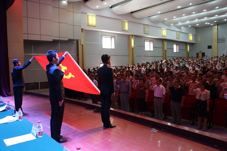 下午4:30,庆祝大会在雄壮的《国歌》声中拉开帷幕。首先,在学院党委委员梁磊同志的带领下,全体参会人员进行了庄严的宣誓仪式,重温入党誓词。随后,党委委员、执行院长路文江同志宣读了《中共兰州财经大学陇桥学院委员会关于表彰先进基层党组织、思想政治工作先进集体、优秀思想政治工作者、优秀党务工作者和优秀共产党员的决定》(陇桥党发〔2016〕17号),表彰了先进基层党组织6个,优秀党务工作者5名,优秀思想工作者5名,优秀共产党员40名。出席表彰大会的董事会和学院领导为获奖的先进党组织、优秀个人分别颁发了奖品和证书,并同受到表彰的先进党组织代表、优秀个人合影。
