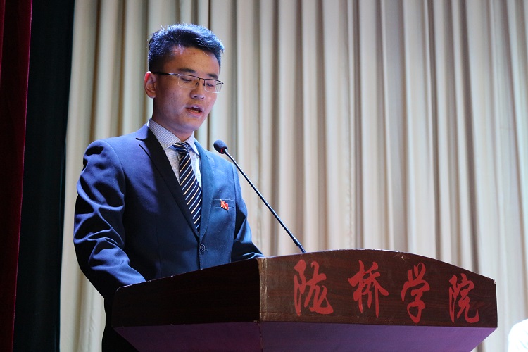 会上,优秀教师党员代表—信息工程系学生党支部书记邓超老师和优秀学生党员代表—会计学系2013级尚苏成同学分别作了发言。