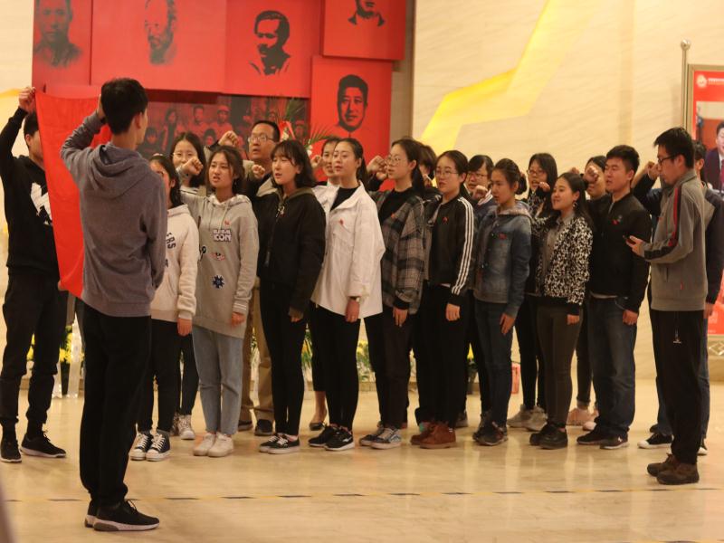 在讲解员的带领下,党员们先后参观了“建立统一战线、进行思想发动、实施西北开发、奔赴抗战前线、接待和输送人员、奋起空中对决、转运苏联援华物资”等七个内容的展览,并观看了八路军办事处旧址会议室、战士宿舍及各种历史文物。丰富详实的历史资料,生动感人的实物展示和大量的多媒体视频影像资料,将大家带回到那段波澜壮阔的艰苦岁月,让大家深刻感受到中国人民在抗日战争中浴血奋战的伟大历程。最后,全体党员在党旗下,庄严地重温了入党誓词。