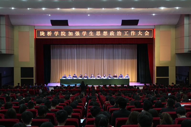 3月22日下午,陇桥学院党委在学术报告厅召开了加强学生思想政治工作大会,学院党委书记王新兰,党委副书记、副院长马义哈,党委副书记郇东,院团委副书记康思忆,各党总支(副)书记以及各系团总支书记参加了会议。会议由党委副书记郇东主持。