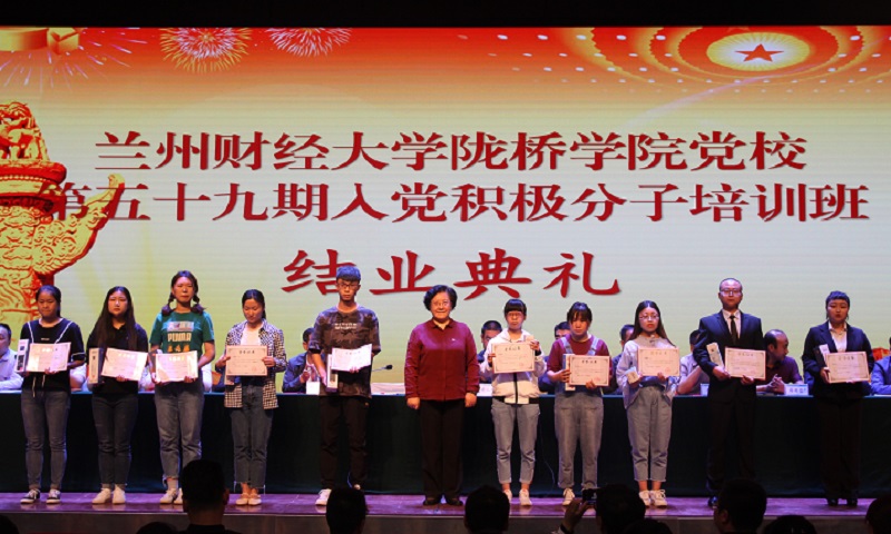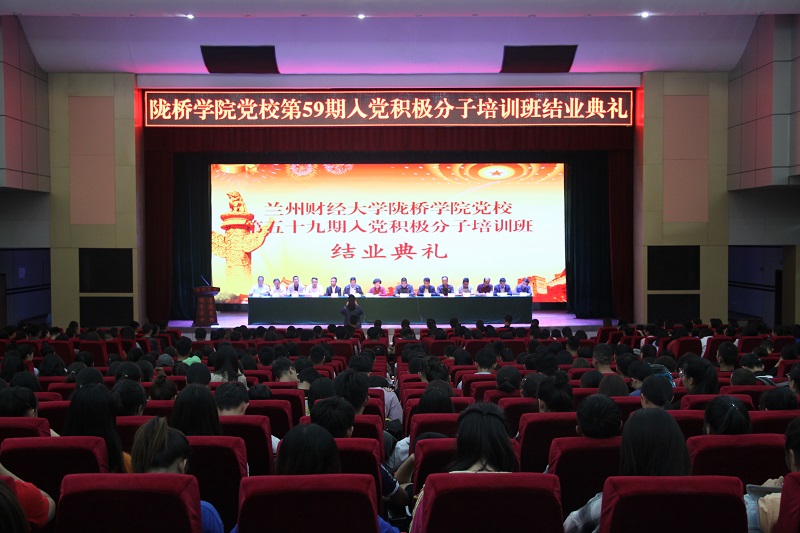 5月21日下午,陇桥学院党校第五十九期入党积极分子培训班结业典礼在学术报告厅举行。学院党委书记王新兰,党委副书记、副院长马义哈,党委委员、副院长杨培权,党委副书记、党校校长郇东,党委委员梁磊、刘伟及各党总支书记出席典礼,各系党务秘书、党委工作部老师及全体培训学员参加了典礼。典礼由党委副书记、副院长马义哈主持。