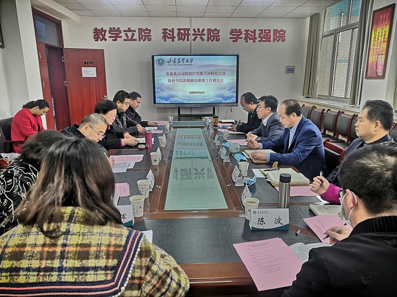 3月26日上午,省级重点马院对口支援兰州财经大学陇桥学院思想政治教育工作推进会在甘肃农业大学召开,甘肃农业大学党委常委闫述乾,陇桥学院党委书记王新兰、副书记马义哈、副院长燕宏,甘肃农业大学马克思主义学院党总支书记闫翔、院长侯庆丰、副院长桑碧桃,甘肃农业大学农业发展研究院执行院长尚明瑞以及两校部分职能部门负责人参加会议。会议由甘肃农业大学马克思主义学院党总支书记闫翔主持。