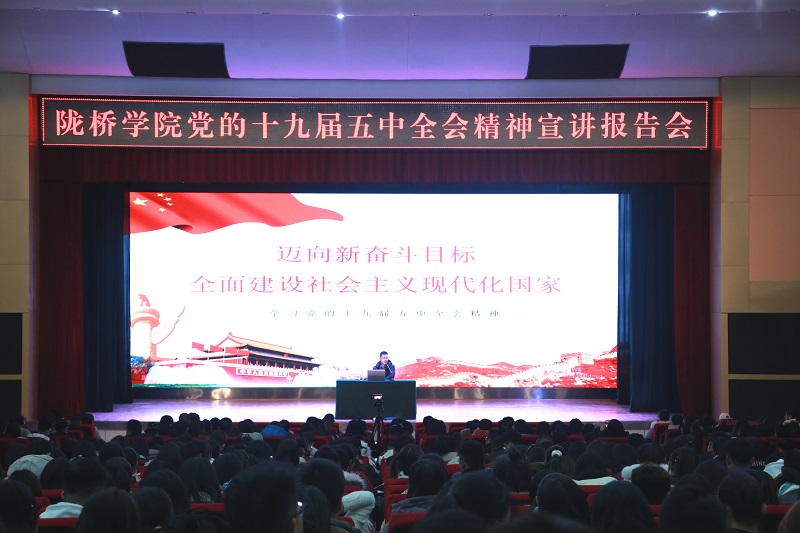 为深入学习宣传贯彻党的十九届五中全会精神,进一步在全院广大教师青年中掀起学习全会精神热潮,根据中共甘肃省委、中共甘肃省委教育工委统一安排,12月28日下午,中共甘肃省委“博士宣讲团”成员,西北师范大学团委副书记、马克思主义学院马克思主义中国化研究所所长、硕士研究生导师王树亮副教授来我院作了以“迈向新奋斗目标——全面建设社会主义现代化国家”为题的党的十九届五中全会精神宣讲报告,学院共计800余名师生代表到场聆听报告,报告会由党委书记王新兰主持。