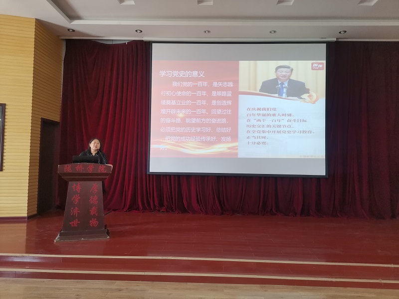 此次讲座的主旨是:进一步贯彻落实习近平总书记在党史学习教育动员大会上的重要讲话精神,深入开展党史学习教育,以期做到“学史明理、学史增信、学史崇德、学史力行”。刘绍涛教授从井冈山斗争时期、赣南闽西根据地时期、延安时期讲述了中国革命新道路的探索历程。刘绍涛讲座内容,深挖历史细节,娓娓道来,层层递进,为我们清晰的展示了中国共产党在探索革命新道路过程中的艰辛与不易。