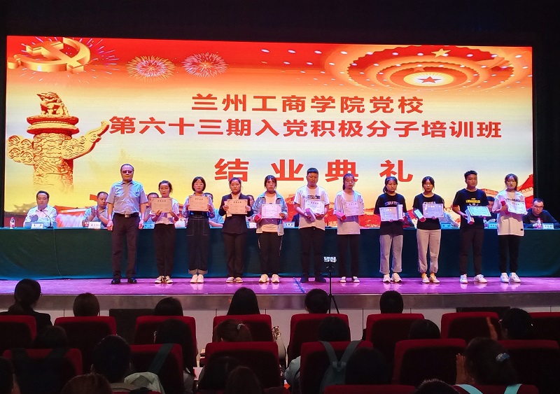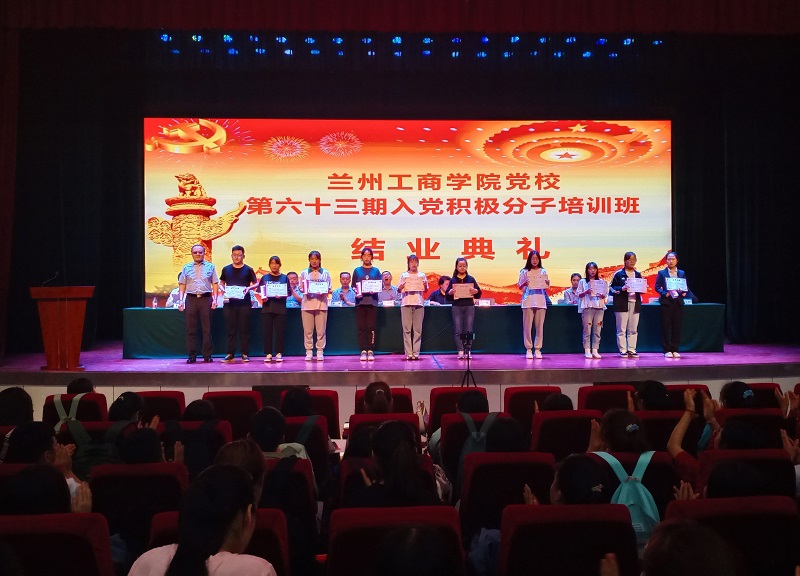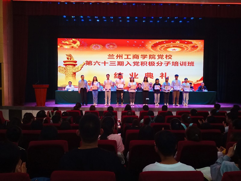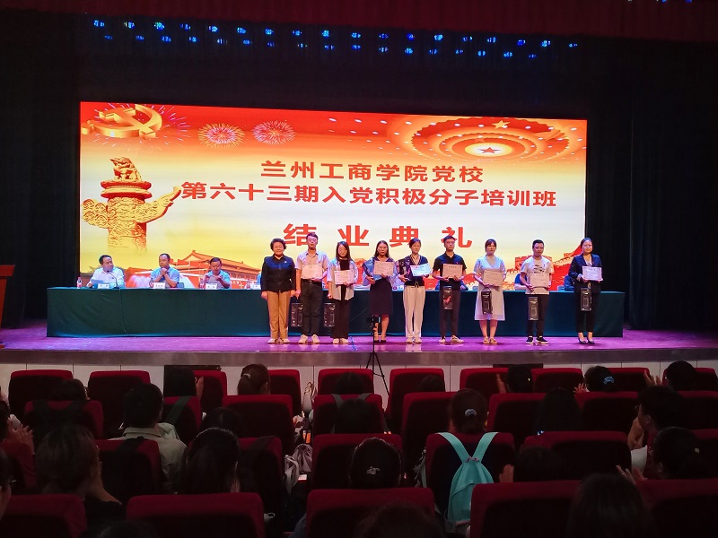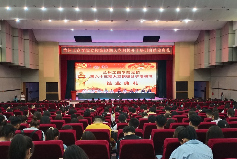 6月15日下午,兰州工商学院党校第六十三期入党积极分子培训班结业典礼在学术报告厅举行。党委书记王新兰,常务董事、组织部部长李晓光,党委委员杨培权、梁磊、刘伟,各党总支书记出席典礼,各学院党务秘书、党委工作部教师及全体培训学员参加了典礼。典礼由党委工作部常务副部长、团委书记秦勇主持。
