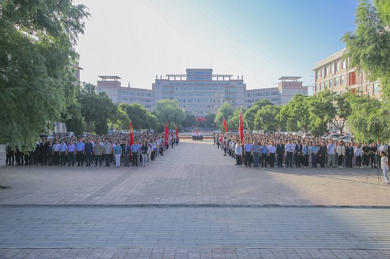为庆祝中国共产党成立100周年,进一步加强爱国主义教育,增强师生的责任感与使命感,引导学生树立远大理想、培养积极奋发向上的进取精神。7月1日上午,兰州工商学院在学校广场举行庆祝中国共产党成立100周年暨“同升国旗•共唱国歌”活动。董事会领导、全体校领导出席活动,各学院院长,各党总支、直属党支部书记,各部门负责人,学生党员及入党积极分子代表共计1500余人参加活动。活动由党委副书记郇东主持。