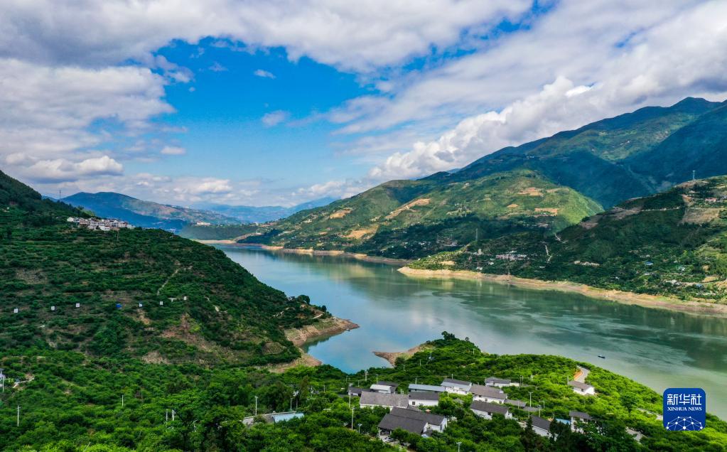 这是2022年5月19日拍摄的长江巫山段曲尺乡一带景色(无人机照片)。
