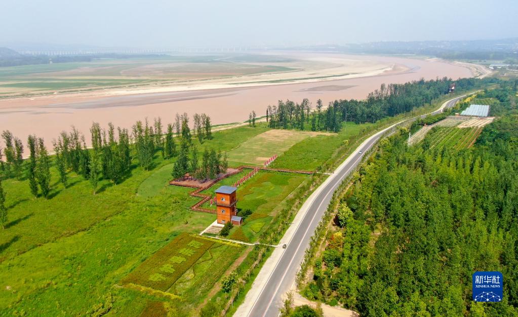 这是2022年8月10日在河南省三门峡市拍摄的黄河生态廊道(无人机照片)。