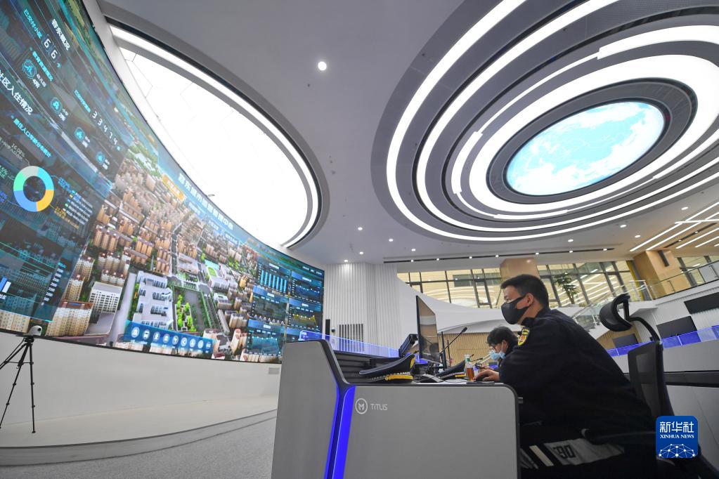2022年3月29日,工作人员在雄安新区容东城市运营管理中心监管平台工作。